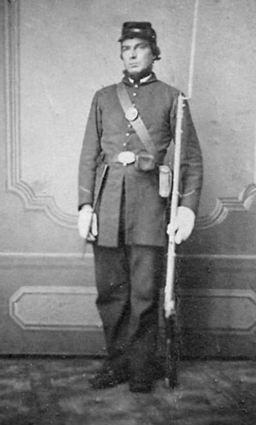 In Union uniform while serving in Company H of the 88th Pennsylvania Volunteer Infantry during the Civil War